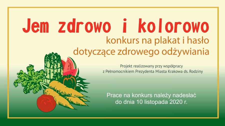 Młodzieżowy Dom Kultury im. K. I. Gałczyńskiego zaprasza do wzięcia udziału w konkursie plastycznym na plakat i hasło dotyczące zdrowego odżywiania pn. „Jem zdrowo i kolorowo” w ramach kampanii „Zdrowe żywienie=mądre myślenie” pod patronatem Prezydenta Miasta Krakowa.