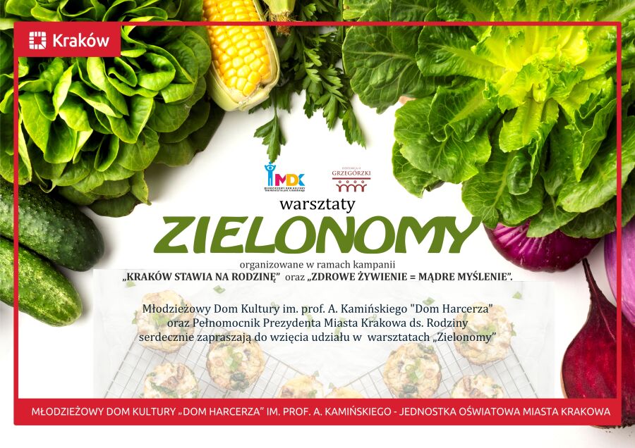 Młodzieżowy Dom Kultury im. prof. A. Kamińskiego "Dom Harcerza" i Pełnomocnik Prezydenta Miasta Krakowa ds. Rodziny serdecznie zapraszają do wzięcia udziału w warsztatach pn. "Zielonomy".